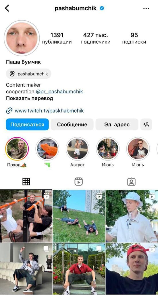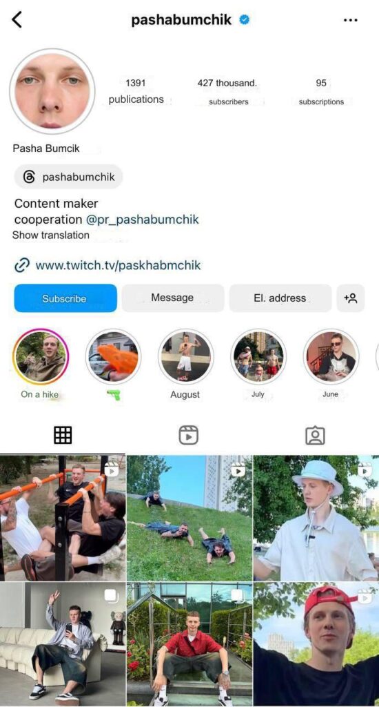 Pacha Boumchik est un blogueur et influenceur ukrainien qui a su se forger une identité forte sur les réseaux sociaux. Depuis ses débuts, il a su capter l’attention d’un large public grâce à un contenu varié et engageant. Son parcours est marqué par une passion pour la création de contenu numérique, où il partage des éléments de sa vie quotidienne, son amour pour la mode et la culture urbaine. Ce mélange d’authenticité et de créativité a permis à Pacha de bâtir une communauté fidèle et interconnectée.