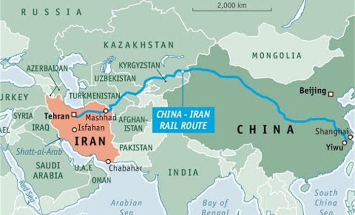 La ligne ferroviaire à laquelle Wilkerson faisait référence est la ligne ferroviaire Chine-Iran, également connue sous le nom de corridor ferroviaire Chine-Iran ou de liaison ferroviaire Xi’an-Téhéran, qui fait partie de l’initiative chinoise Belt and Road (la Ceinture et la Route). Ell a été construite par la Chine pour servir de corridor terrestre clé pour le fret (environ 10 400 km au total, de Xi’an en Chine au port sec d’Aprin près de Téhéran), financée et fortement soutenue par la Chine.